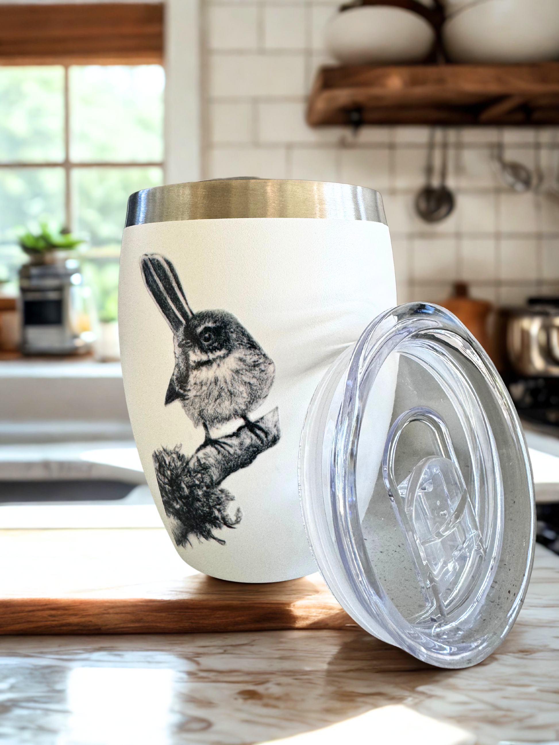 Introducing the Reusable Coffee Cup - an eco-friendly and premium quality choice for your daily caffeine fix. With a 300ml double-wall, vacuum insulated stainless steel body and BPA-free push on slider lid, it keeps your drinks hot or cold for hours. Designed with a stunning powder coated finish, this cup showcases beautiful original artwork by Wildart by Kelly. Stand out from the crowd while reducing single-use waste. Perfect for the environmentally-conscious coffee lover!